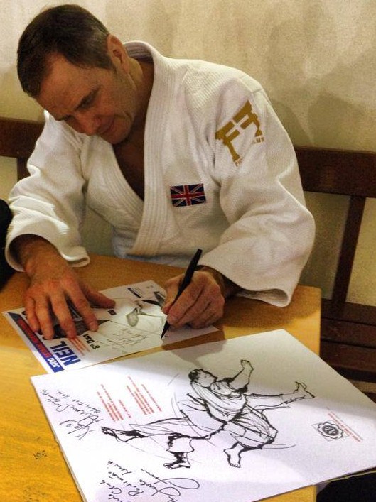 Outubro de 2013 - Sensei Neil Adams a assinar o poster do estágio de Algarve de 1978.